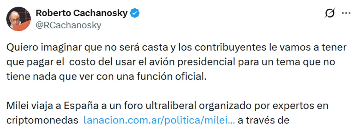 Porque en la medida que La Libertad Avanza no resuelva la economía, la inflación siga creciendo y el estancamiento de la actividad se prolongue, a Milei se le comenzará a cuestionar hasta el costo de sus propios viajes internacionales.