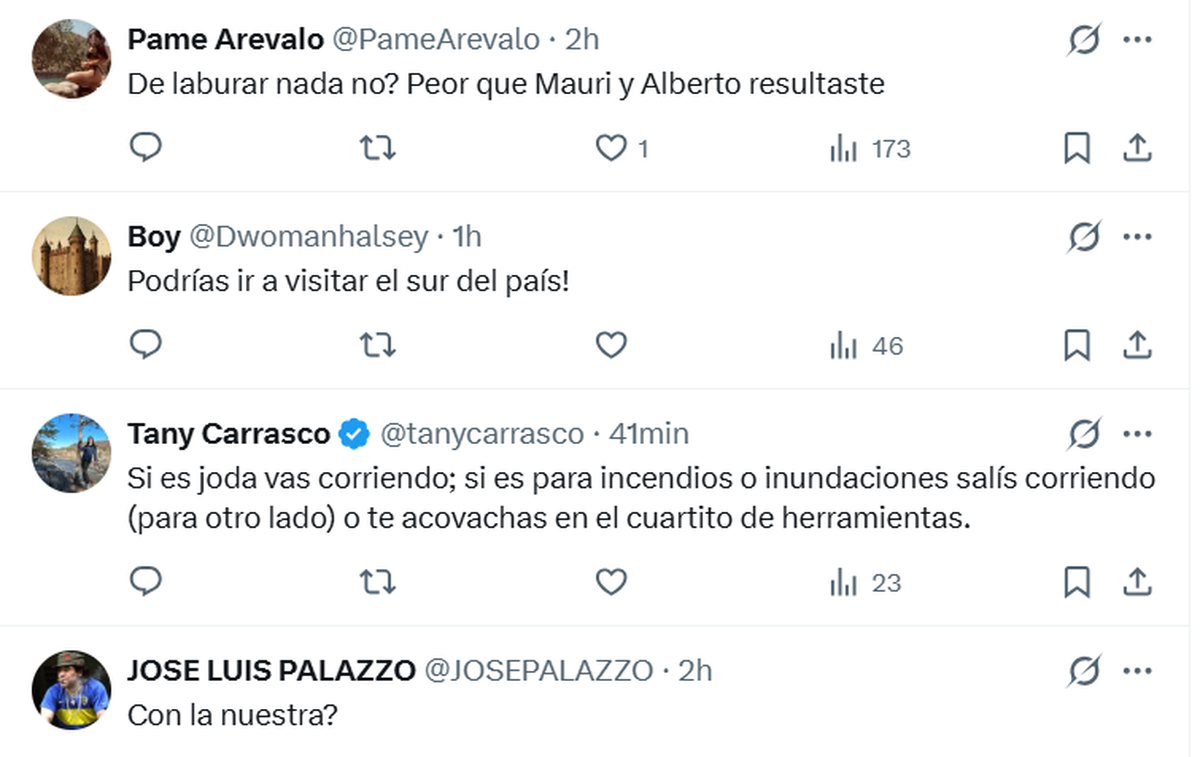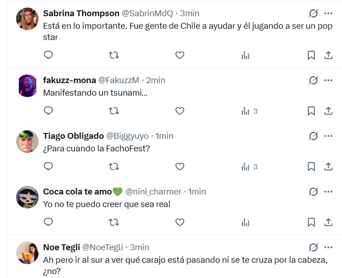 El propio Javier Milei lo anunció en su cuenta de X, y en su posteo cosechó varios comentarios de usuarios que le reclamaron que no haya ido al sur para interiorizarse sobre los incendios, sobrevolar la zona y agradecer personalmente a los brigadistas (y no con una imagen creada con IA). Otros le espetaron que "sigue de joda" o chicanearon con "tapado de laburo".