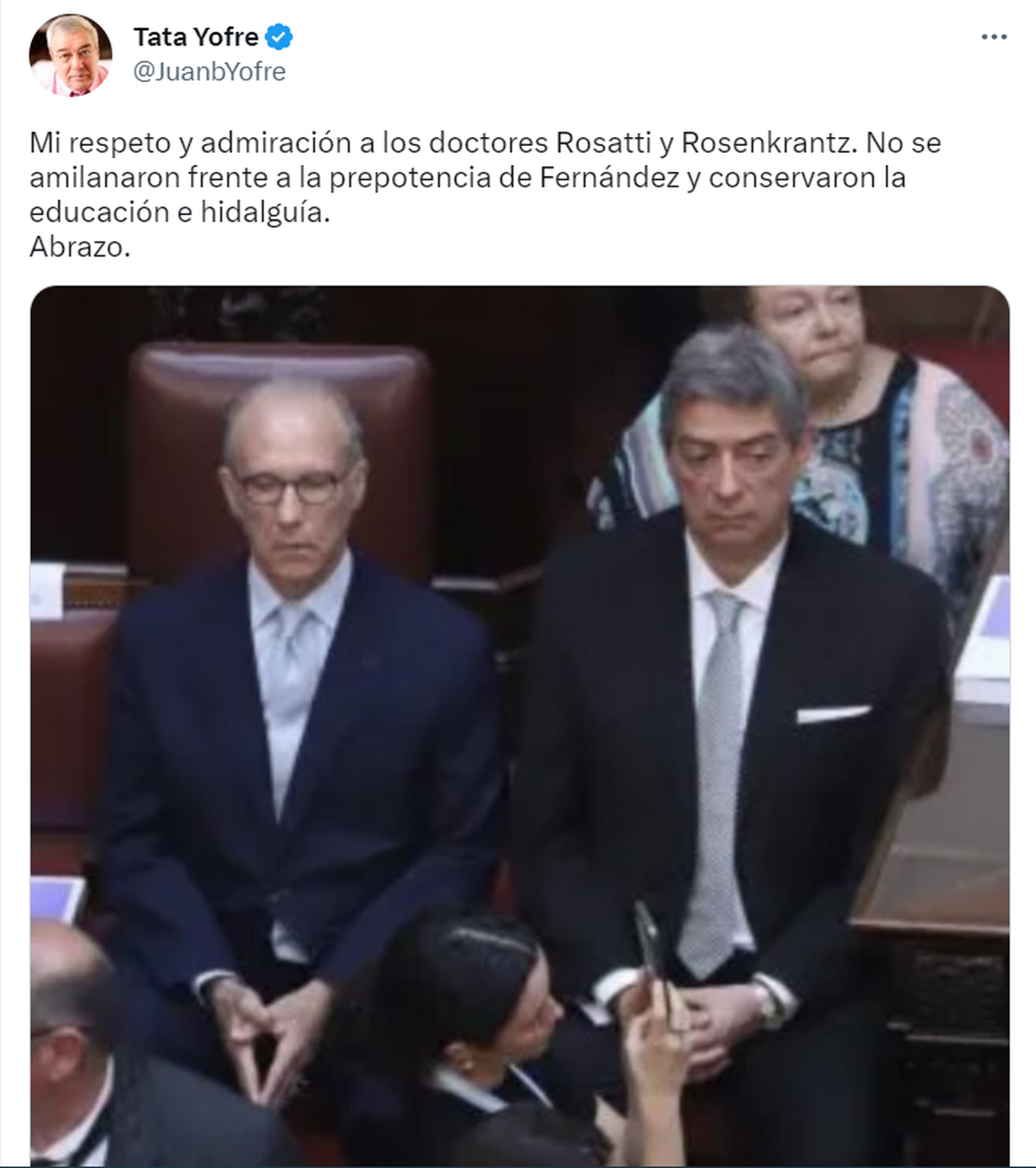 El presidente de la Corte Suprema de Justicia de la Nación, Horacio Rosatti, y el vicepresidente, Carlos Rosenkrantz, se mantuvieron firmes en su gestualidad, que fue rescatado por opositores y la Asociación de Magistrados: