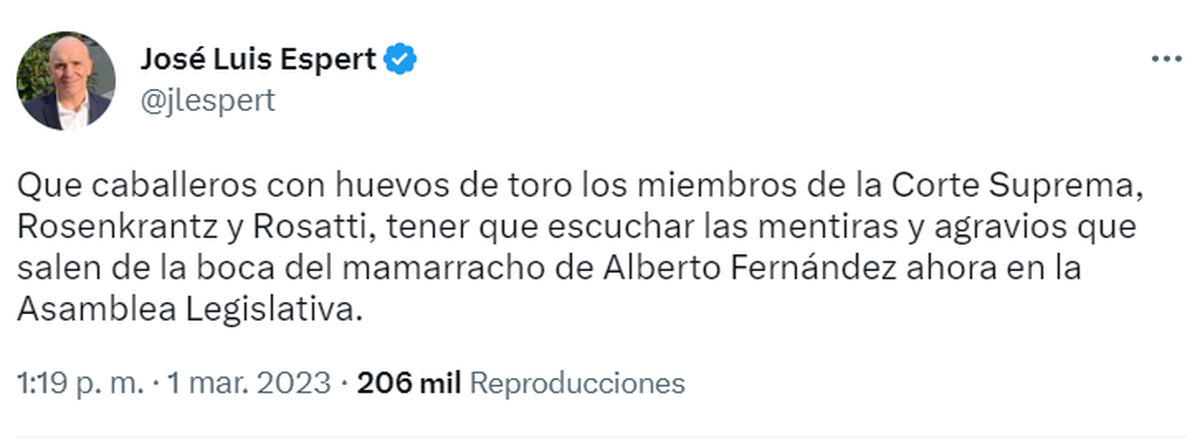Sobre la presencia de los miembros de la Corte Suprema Horacio Rosatti y Carlos Rosenkrantz, el experto consideró: “Eligieron privilegiar el marco institucional y la cosa sigue. No cambia nada y ninguno de estos personajes se asusta por un discurso”.