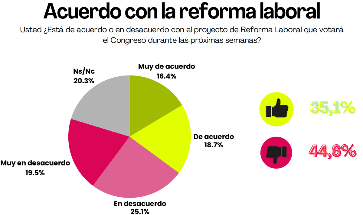 Además, analiza que "la combinación de menor apoyo a la reforma y alto respaldo a la medida de fuerza configura un escenario de tensión estructural entre el programa de transformación laboral del Gobierno y un contexto económico que aún no logra estabilizar el mercado de trabajo. El paro del 19 de febrero se inscribe así en una dinámica más amplia, donde la discusión no es únicamente normativa, sino económica y social".