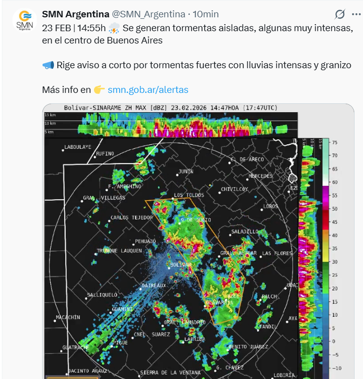 El Servicio Meteorológico Nacional (SMN) emitió alerta amarillo por tormentas fuertes y posible granizo en Buenos Aires y otras provincias.
