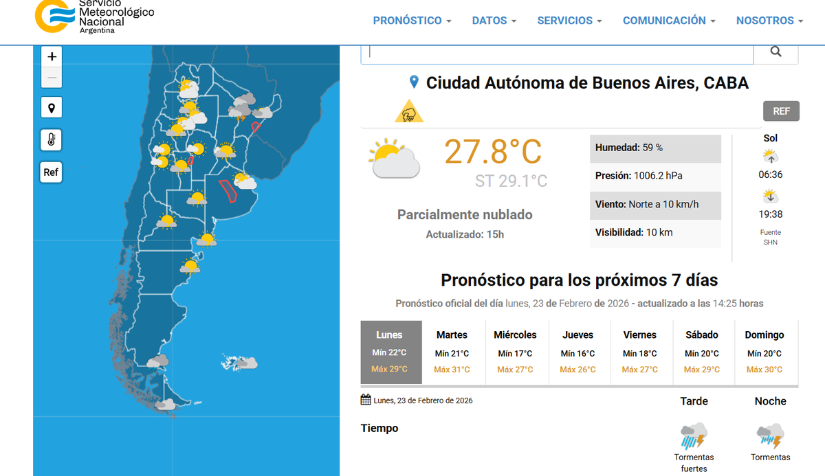 El Servicio Meteorológico Nacional (SMN) emitió este lunes (23/02) por la tarde una alerta amarilla por "tormentas fuertes con lluvias intensas ocasional caída de granizo" en las provincias de Buenos Aires, Corrientes, Chaco y Formosa.