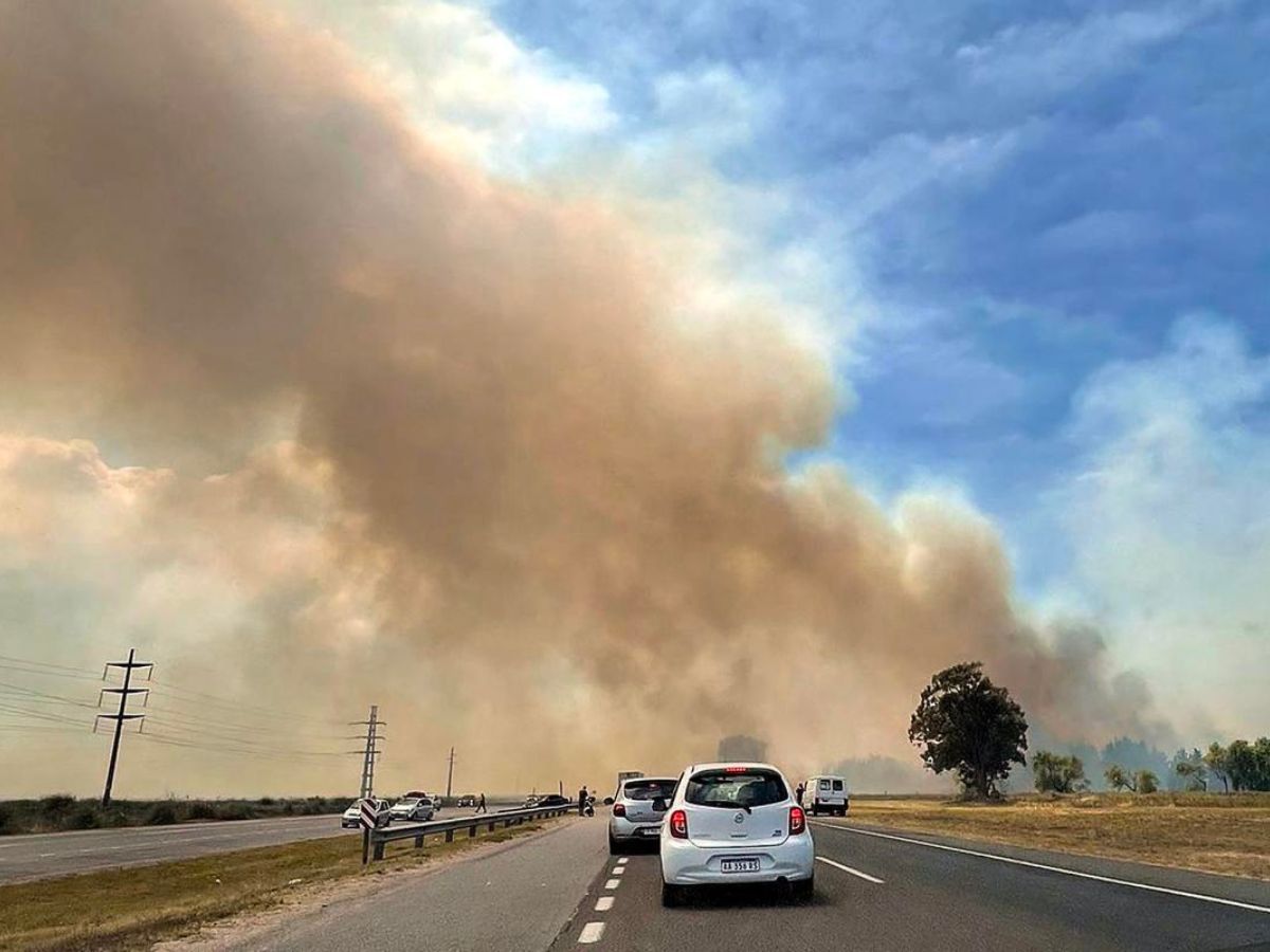 Villa Gesell se ve asolado por una marejada de fuego, donde 3 helicópteros y 7 dotaciones de bomberos controlan un importante incendio forestal sobre la ruta 11, en cercanías al hipermercado Coto.