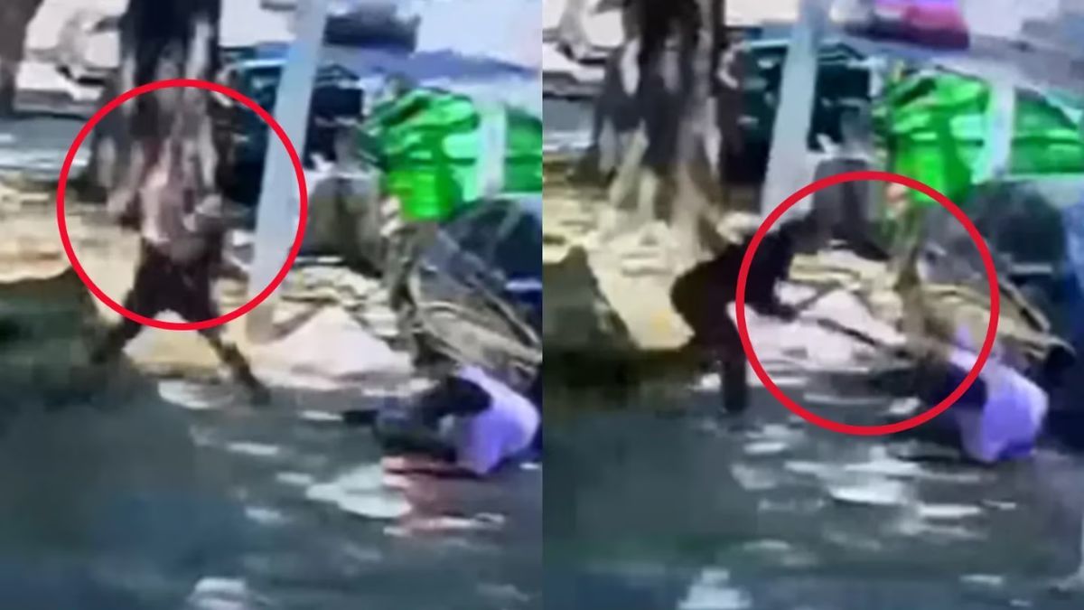 De acuerdo con la grabación tomada, la mujer de 28 años agarró un palo de un contenedor de basura y comenzó a atacar al hombre. Desesperado, trató de correr hacia su auto pero terminó tropezando y cayó al suelo, donde siguió siendo agredido.