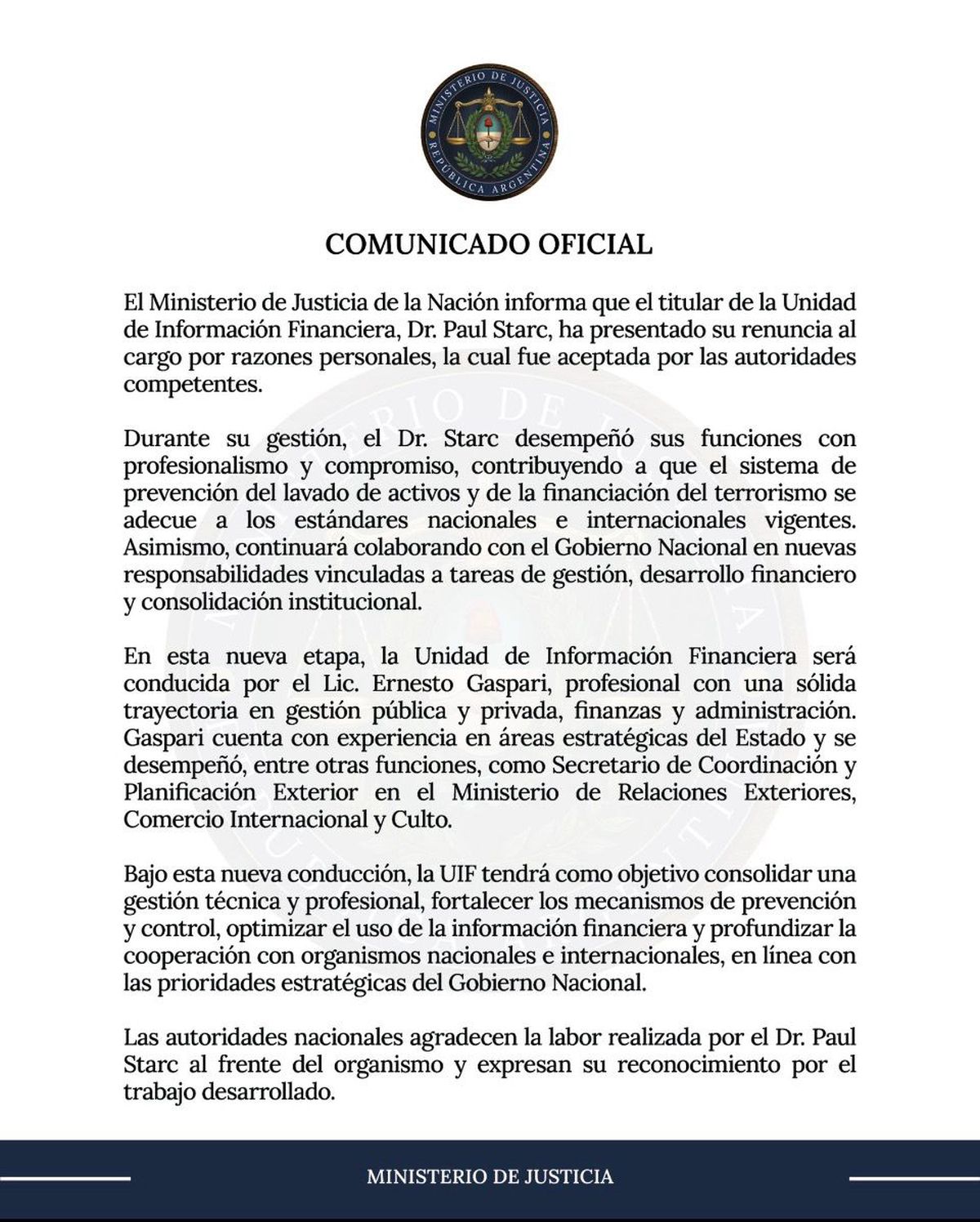 González Rodríguez ingresó en octubre de 2024 pero el presidente de la UIF, Paul Starc, ingresó en enero 2025, en reemplazo de Guillermo Yacobucci. Recién estaba cumpliendo 1 año en la gestión.