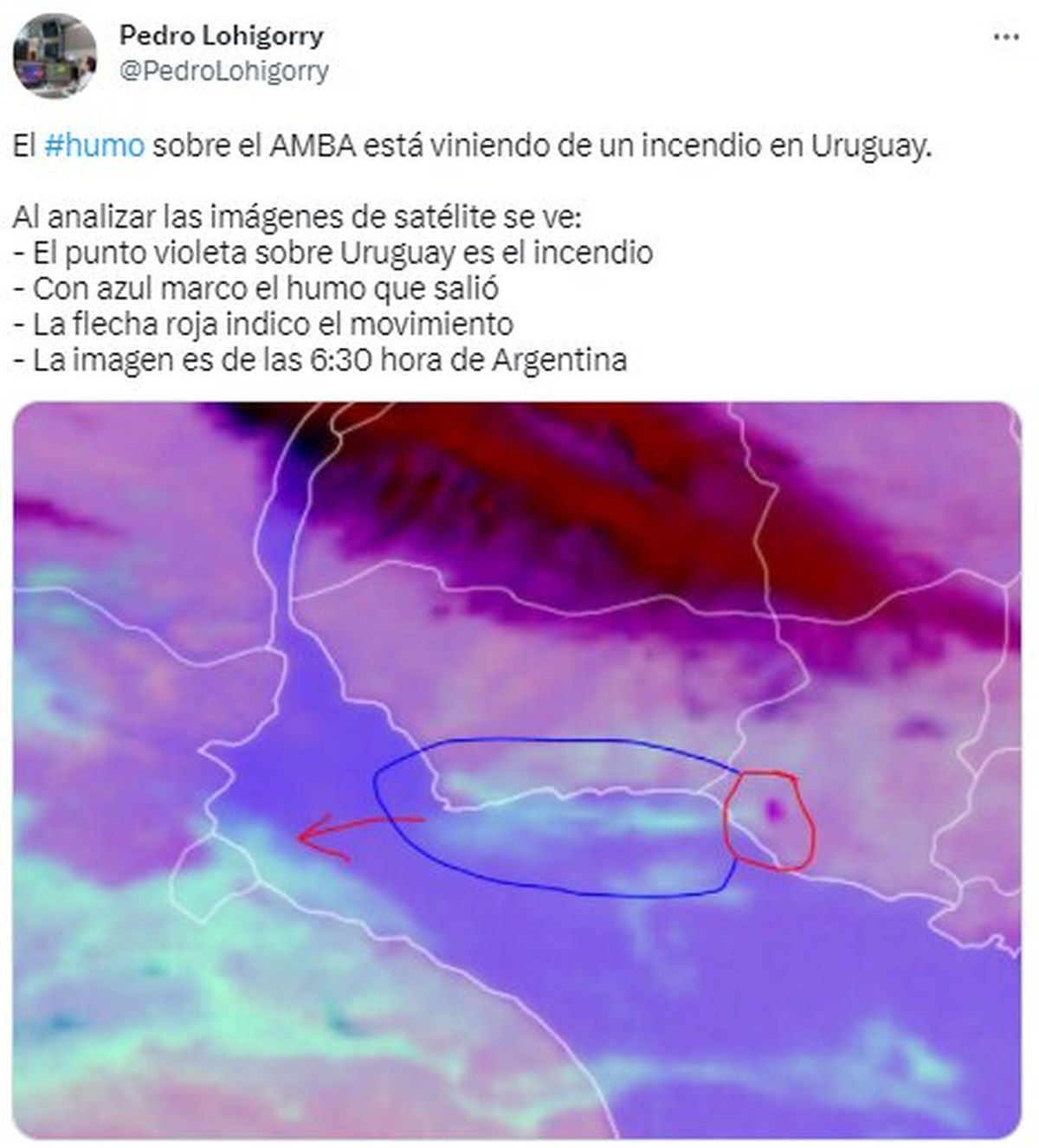 En cambio, el coordinador de Pronóstico Inmediato del SMN, Pedro Lohigorry, ha llevado a cabo un análisis minucioso de las imágenes satelitales en su cuenta de Twitter, confirmando la existencia de un foco ígneo en el país vecino.