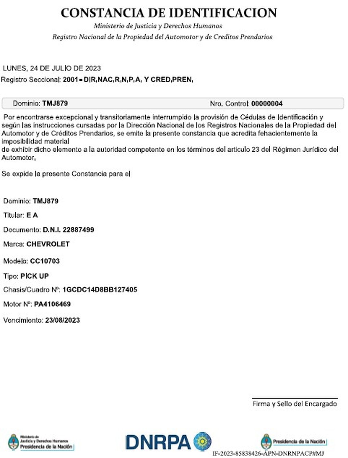 Este papel tiene una validez de 30 días y vale recalcar que se trata de un período que empieza a regir desde el momento que es emitida y varía según cada caso en particular. El modelo fue “puesto en conocimiento de las Fuerzas de Seguridad nacionales y provinciales así como a la Administración Nacional de Aduanas” para evitar problemas ante eventuales controles. En lo que refiere al trámite en sí, no se modifican los costos ni se percibe un arancel extra por la emisión de este documento, el cual será entregado a todo aquel que tenga la expedición pendiente.