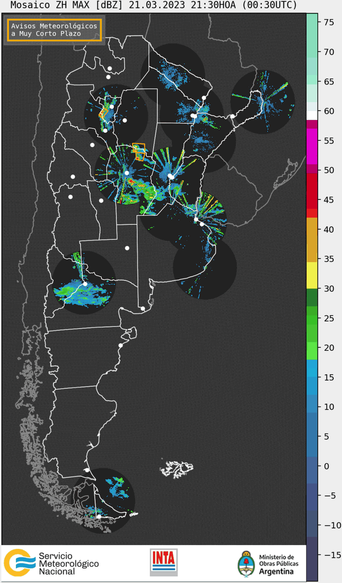 Las imágenes de radar indican zonas del Neuquén y Río Negro alcanzadas por el fenómeno