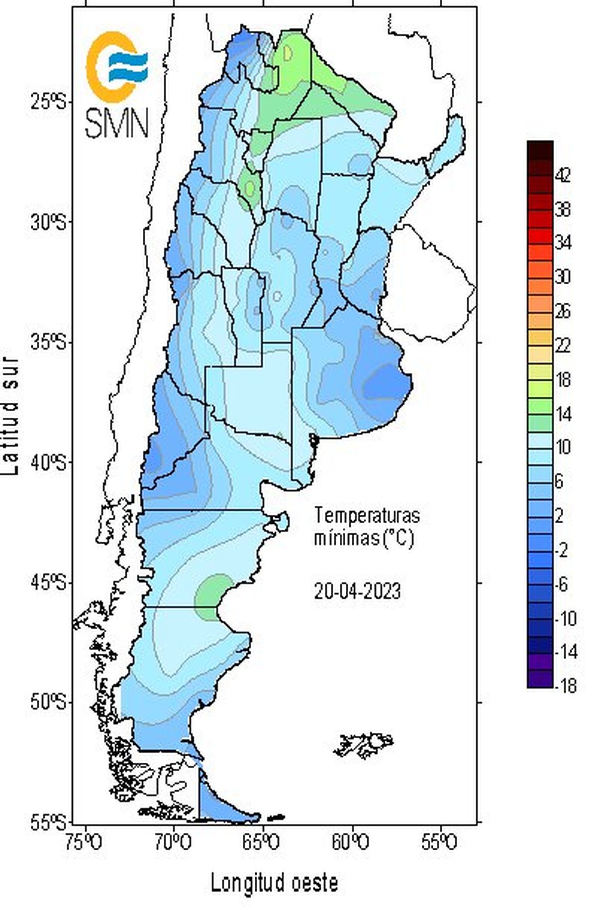 Por ultimo si bajamos hacia la Patagonia sur nos encontraremos con posibilidad de nevadas en Ushuaia. Malvina tendrá Sol con pocas nubes. En el ogro extremo, el norte de la zona las máximas correrán entre 21 y 23 grados si subimos hasta Viedma y el Neuquén que registrará un mínima de 14 ° con cielo nublado.