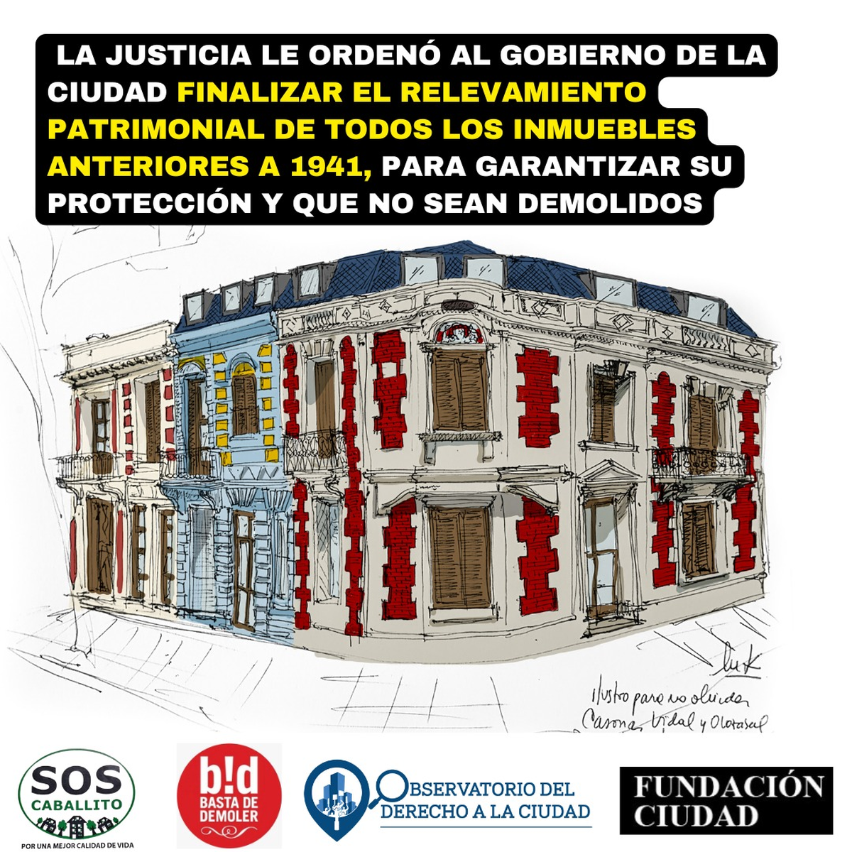 La presentación judicial fue realizada por el Observatorio del Derecho a la Ciudad, La Asociación Civil Basta de Demoler, la Fundación Ciudad y SOS Caballito, con el patrocinio del abog. Jonatan Baldiviezo y la Dra. María Carmen Usandivaras.