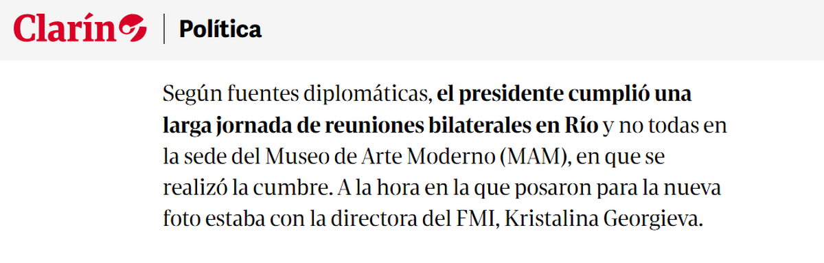 Lo insólito es que Georgieva sí está presente en la foto... entonces, las dudas continúan: ¿se trató de un desplante a Lula Da Silva? ¿El mandatario argentino no quiso salir en la foto? ¿Tuvo algún inconveniente personal?