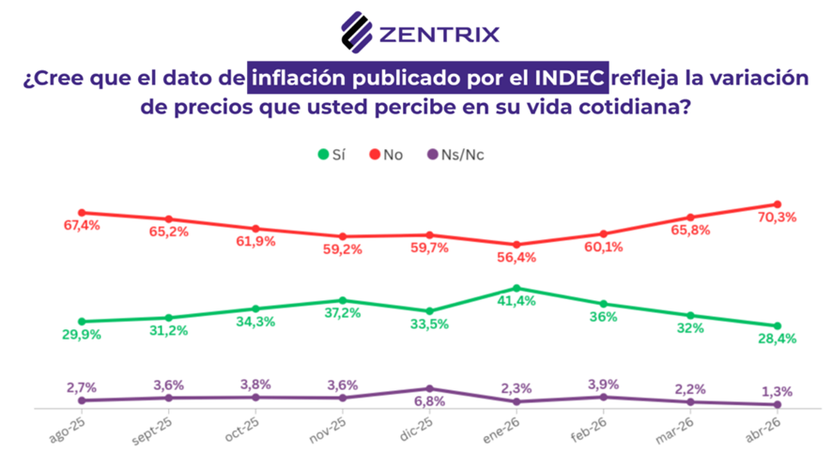 El 70,3% de los consultados considera que el dato oficial de inflación no refleja adecuadamente la variación de precios que percibe en su vida cotidiana, un salto importante respecto de enero, cuando esa mirada alcanzaba al 56,4%, el valor más bajo de la serie.