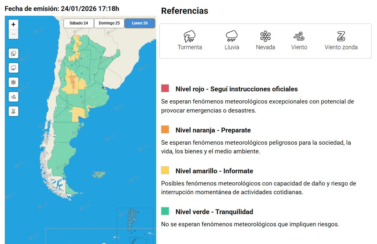 El domingo 25/1 transcurrió con un cielo parcialmente nublado que atemperó las térmicas (24 de mínima y 35 de máxima) y la bóveda celeste quedaría nuevamente semi oculta en la jornada siguiente.