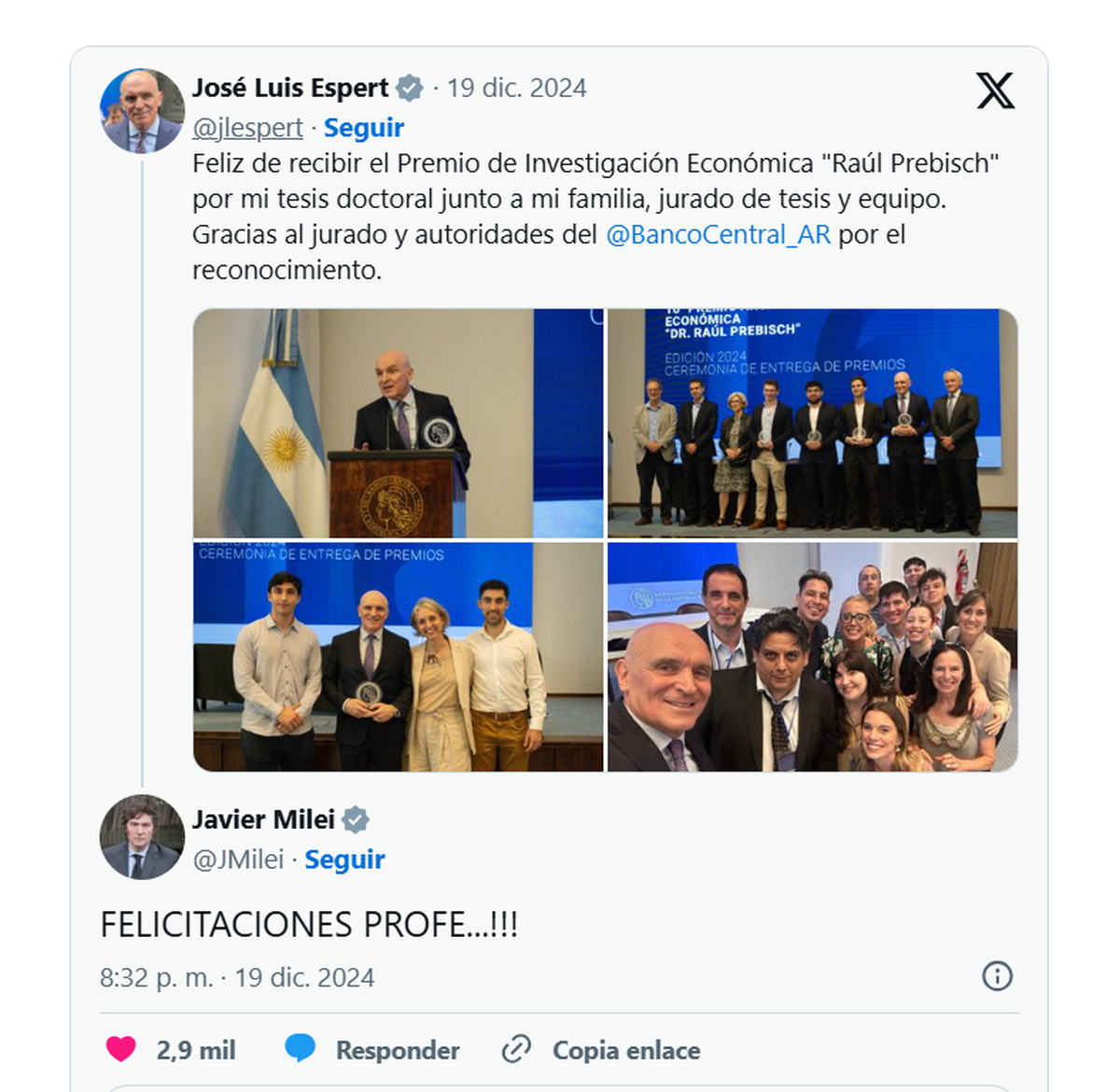 José Luis Espert recibió el premio “Dr. Raúl Prebisch” que otorga el BCRA ($4 millones) y hay polémica por el cambio en las bases del concurso antes del cierre.