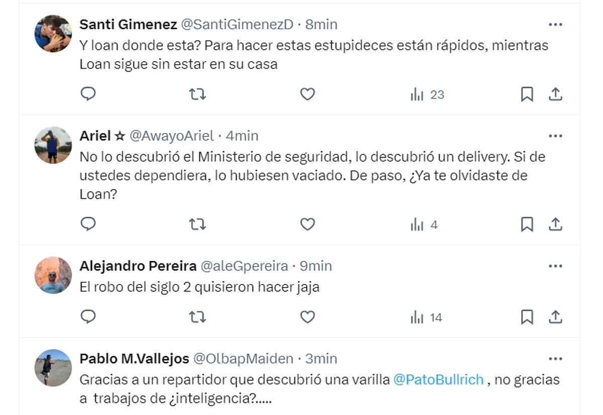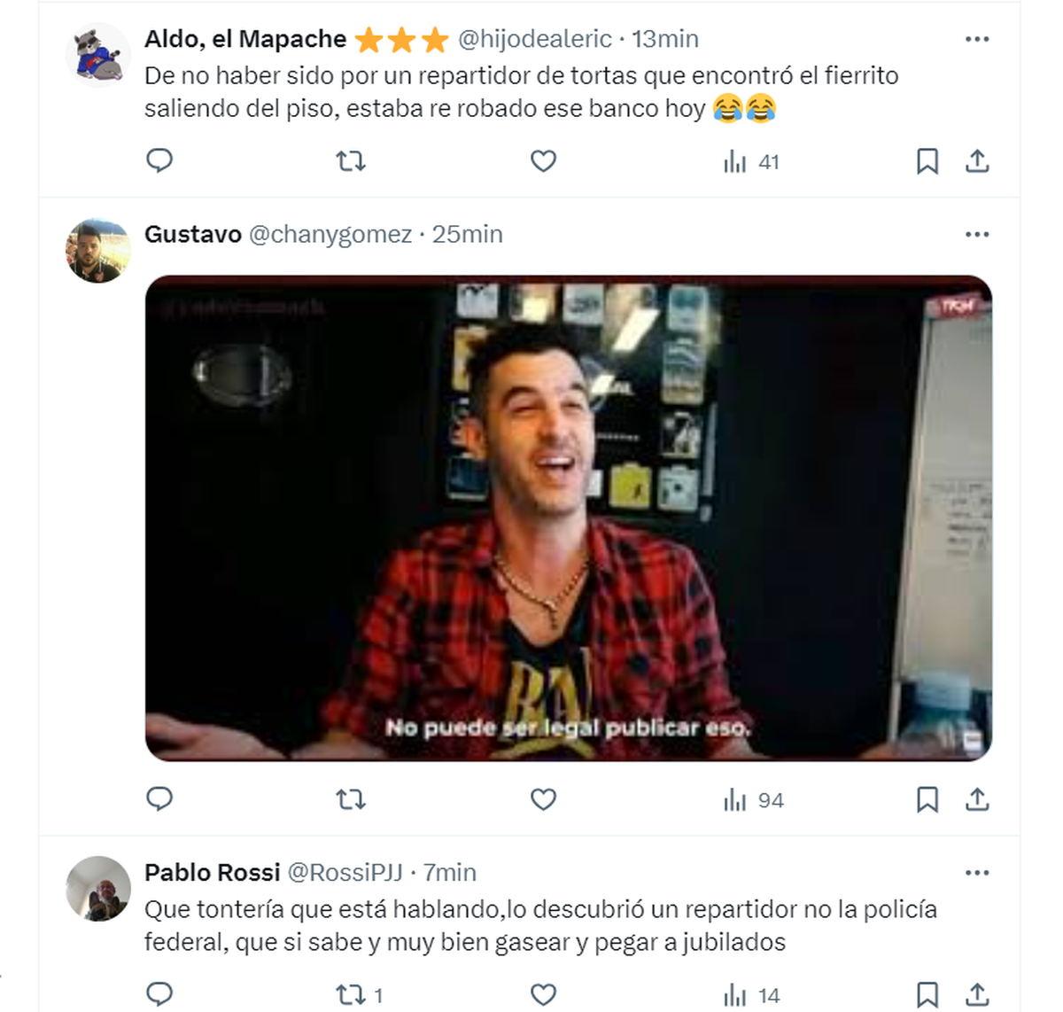Patricia Bullrich publicó un video en el que se la ve dentro del túnel que hicieron los delincuentes que intentaron robar el Banco Macro, en San Isidro. Más allá de las imágenes de la funcionaria dentro de ese espacio, que despertaron algunas risas, muchos de los usuarios de X (Twitter) le achacaron que intente mostrar gestión con un hecho en el que no tuvo nada que ver: el túnel fue descubierto gracias a un delivery que notó una “varilla gruesa metálica que emergía entre los adoquines”, y dio aviso a la Policía.