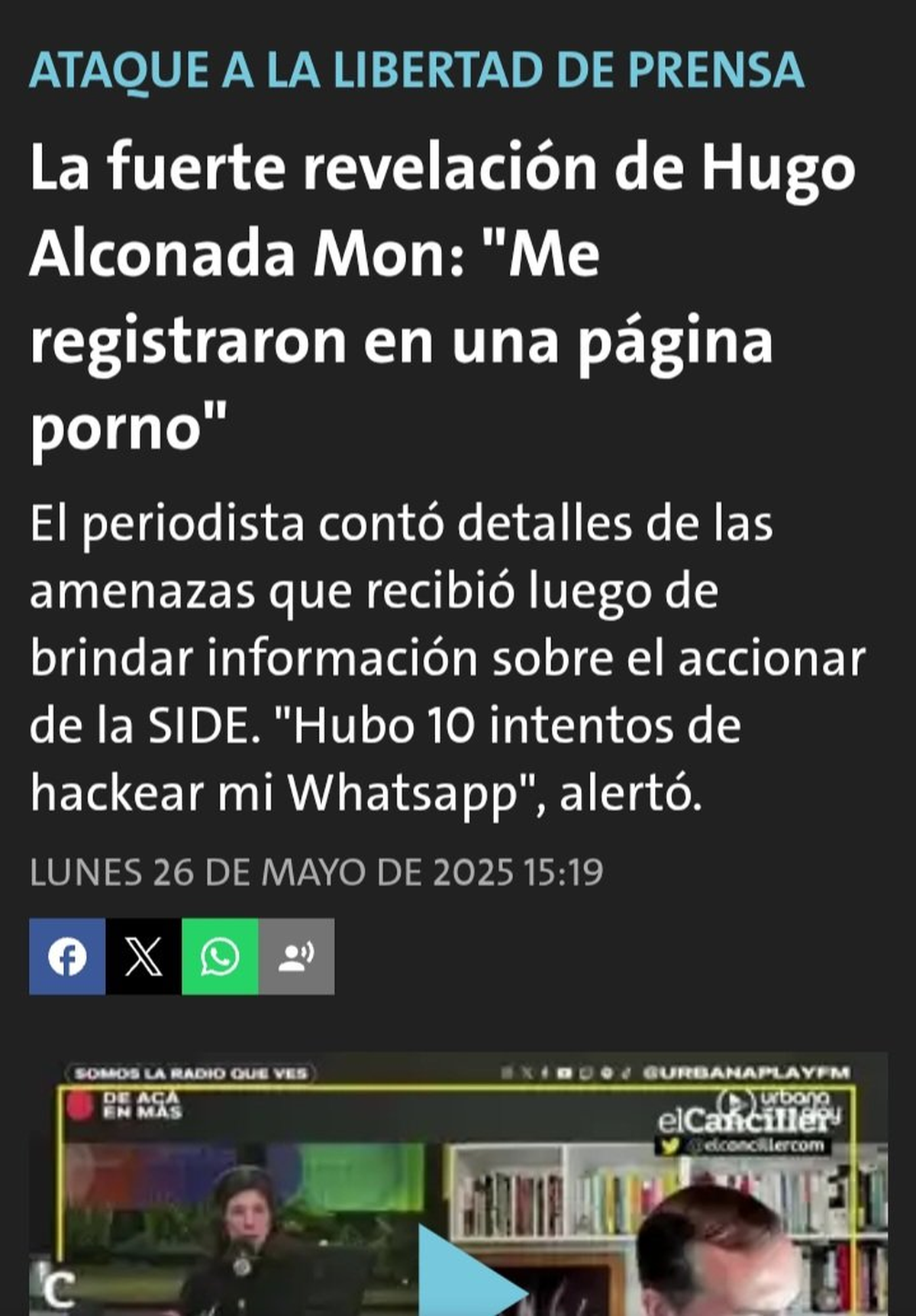 “Nosotros ratificamos todo lo publicado y de manera inmediata comenzaron a llover intentos de hackeos de mi whatsapp. También mi correo electrónico y mi cuenta de X. Como no lo pudieron lograr, pasaron a registrarme en páginas de traders financieros para comprometerme en cuentas para comprar todo tipo de elementos”.