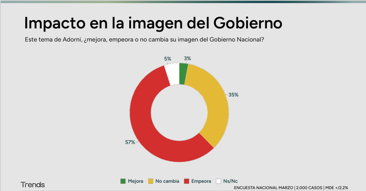 Adorni profundiza la erosión: El 57% respondió que el escándalo del jefe de Gabinete, investigado por enriquecimiento ilícito, "empeora" su percepción sobre el Gobierno.