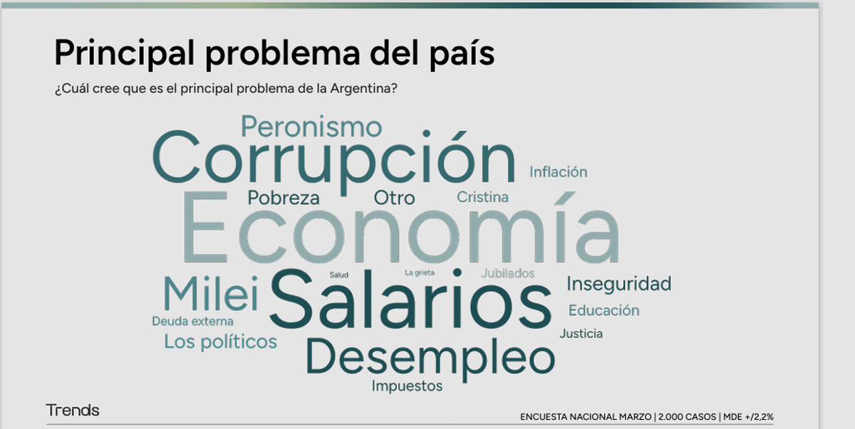 Salarios, desempleo y corrupción, los principales problemas: Se destacan esas inquietudes en una nube de palabras.