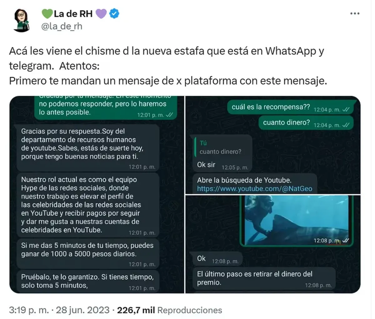 El inicio del fraude se da cuando a través de diversos números telefónicos, estos individuos se comunican con usuarios y usuarias con la intención de proponerles una tarea fácil, aparentemente en nombre de YouTube.