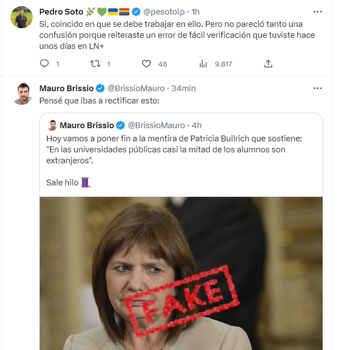 Por su parte, Mauro Brissio, especialista en Fake News e Impulsor de la Ley 'AntiFakeNews', salió a desmentir a la precandidata presidencial de JxC con datos oficiales.