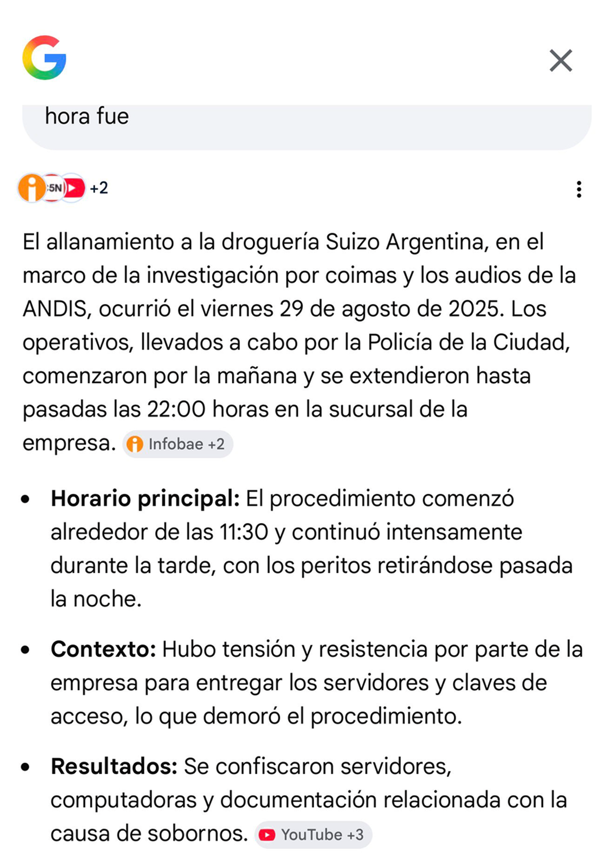 El allanamiento tuvo lugar el 29 de agosto de 2025. Todo comenzó por la mañana y terminó pasadas las 22 horas.