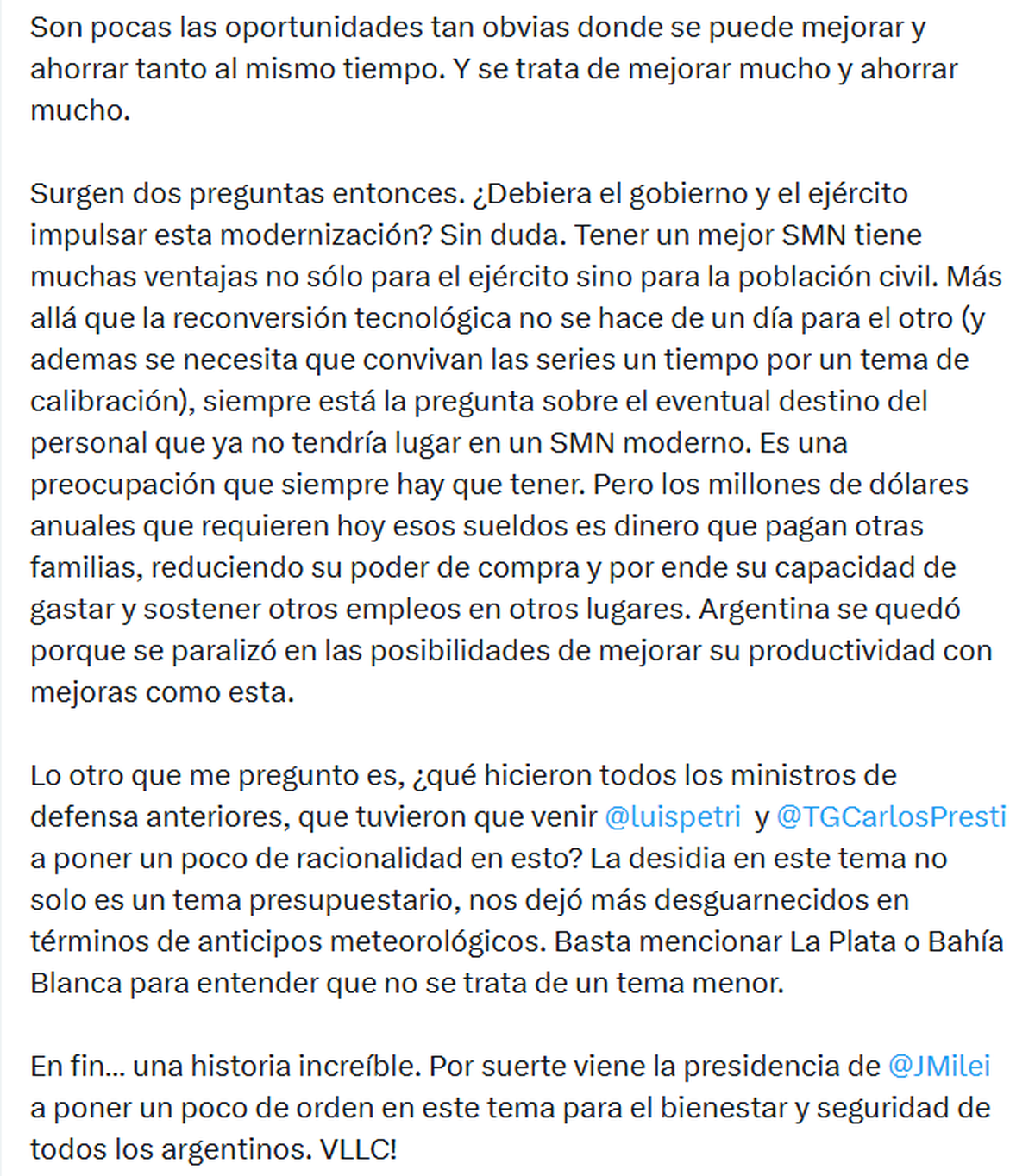 Y remató: "Digo para que tomen nota de las cosas que se están haciendo con esta problemática tremenda que está viviendo día a día el SMN con estos despidos".