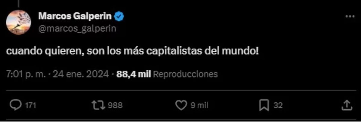 Esta publicación fue respondida por el empresario argentino que señaló: “¡Cuando quieren, son los más capitalistas del mundo!”.