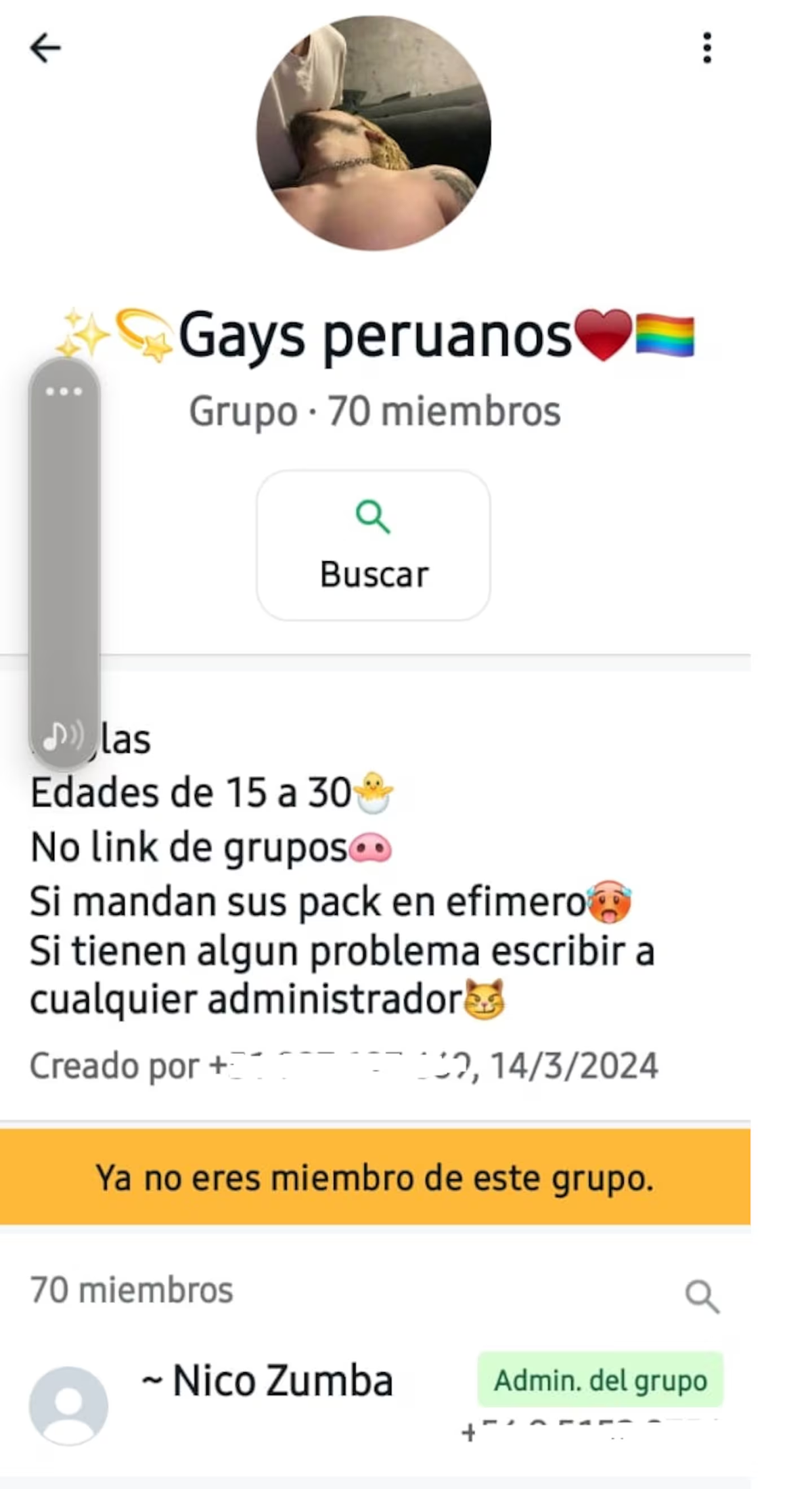 En la descripción del grupo, creado en marzo de este año por "Nico Zumba", precisan que admiten "edades de 15 a 30 años". Hasta el lunes pasado, tenía un total de 70 miembros, tanto adultos como menores, que fueron engañados a través de distintas maniobras.