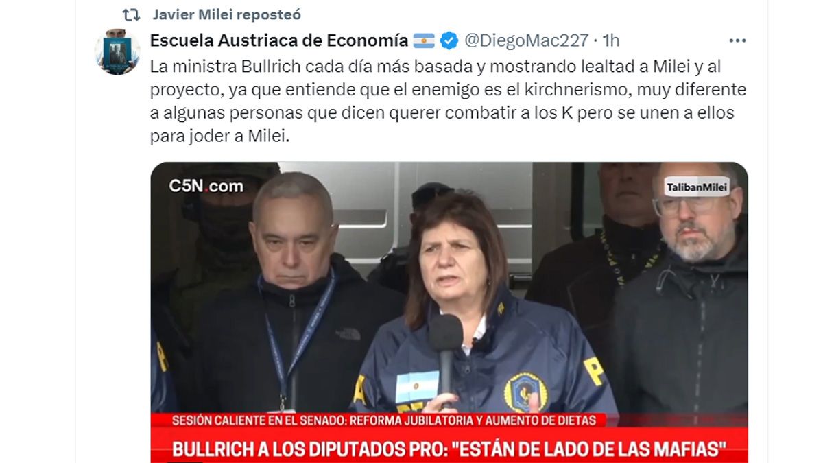 Javier Milei y sus retuits contra el PRO