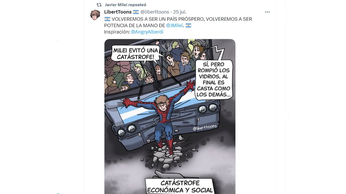 Javier Milei, de superhéroe a prócer: Insólitos 'retuits' del Presidente