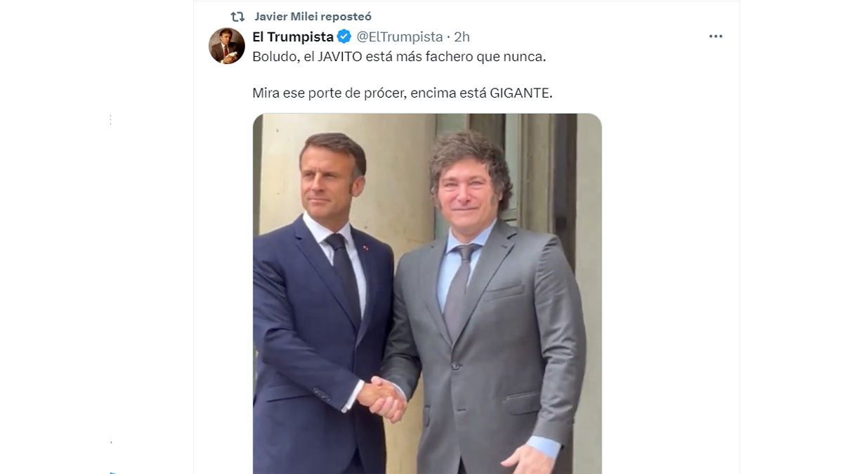 Javier Milei está continuamente compartiendo mensajes de otros usuarios -libertarios, obviamente- en X (ex Twitter). Como Urgente24 ya explicó, es parte de una estrategia para lograr más visibilidad, generar tendencias y reforzar el relato. Pero algunos retuits del Presidente son, como mínimo, llamativos.