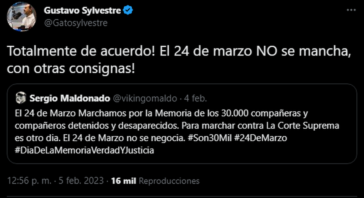 Debido a lo anterior, algunos kirchneristas aprovecharán el 24 de marzo para marchar a su favor y en contra de la CSJN por sus decisiones. Ahora sí. Se abrió una brecha porque también están quienes, dentro del kirchnerismo, nada más quieren marchar por los desaparecidos sin hacer del homenaje una causa mediática.