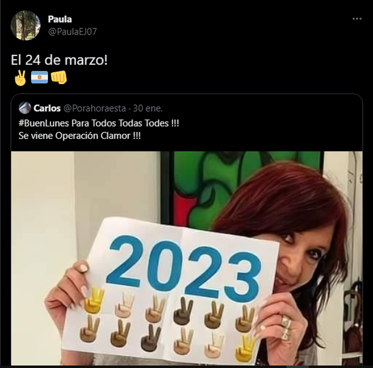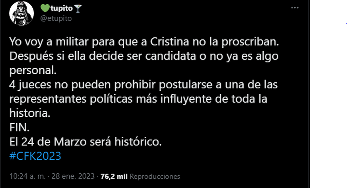 Todo esto se tratará del Operativo Clamor por Cristina Kirchner: será una marcha a tribunales para "levantar la proscripción". Habrá afiches, pintadas y calendario hacia el 24 de marzo con la consigna: