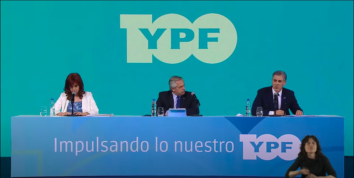 En el marco de los 100 años de YPF, la vicepresidenta Cristina Kirchner y el presidente Alberto Fernández volvieron a mostrarse juntos públicamente en Tecnópolis frente a gobernadores, senadores, diputados, sindicalistas y demás dirigentes oficialistas.