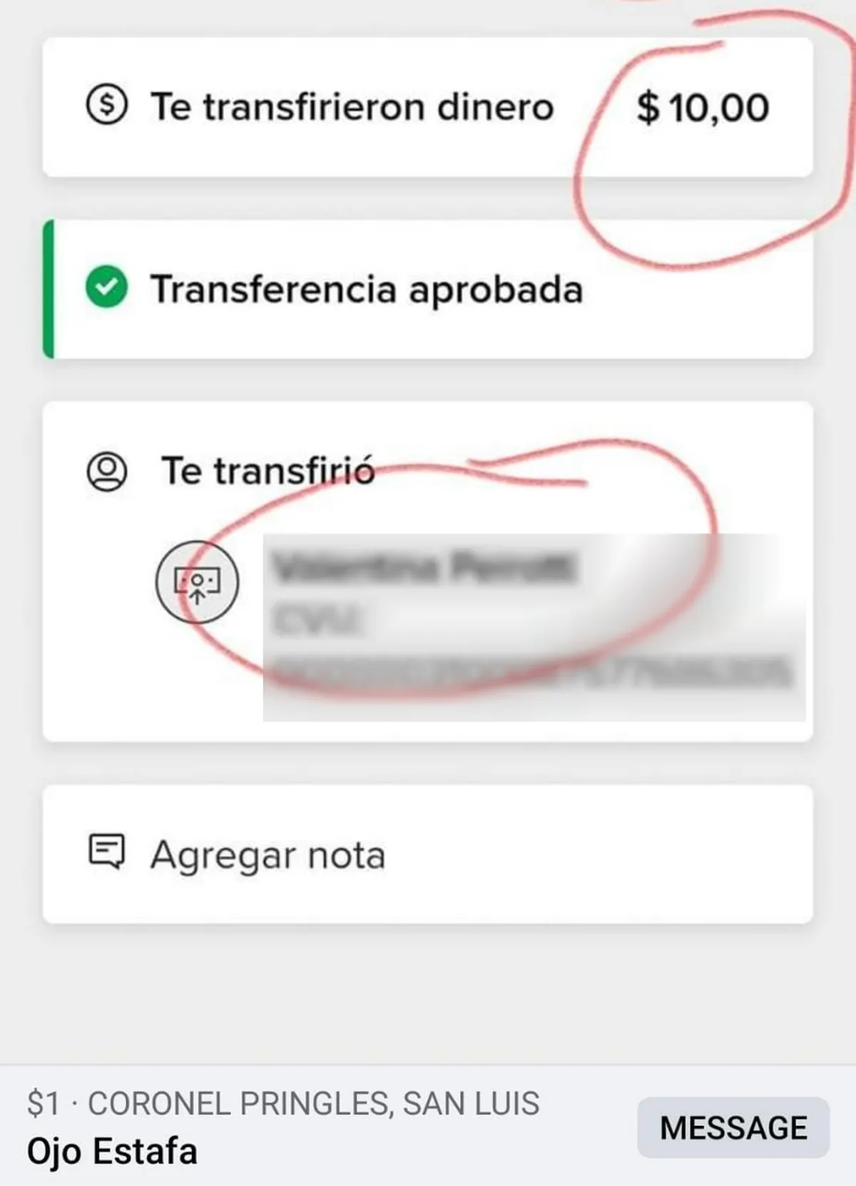 Ahora bien, la mecánica es tan simple como efectiva: un desconocido realiza una transferencia "errónea" a tu cuenta, y luego intenta contactarte para que se lo devuelvas, pero a una cuenta totalmente diferente.