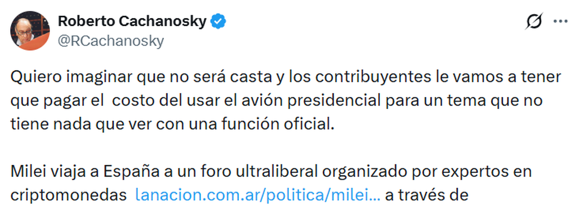 Esto, como se ha repetido en reiteradas oportunidades, generó polémica no sólo por el costo económico ("marginal", según Milei) de sumar a una persona que no es funcionaria a la comitiva sino principalmente por la cuestión simbólica, en un gobierno que se jacta de ir contra los privilegios de la "casta" -incluso prohibieron que los vehículos oficiales sean utilizados por familiares de funcionarios- y termina haciendo lo mismo que dice cuestionar.