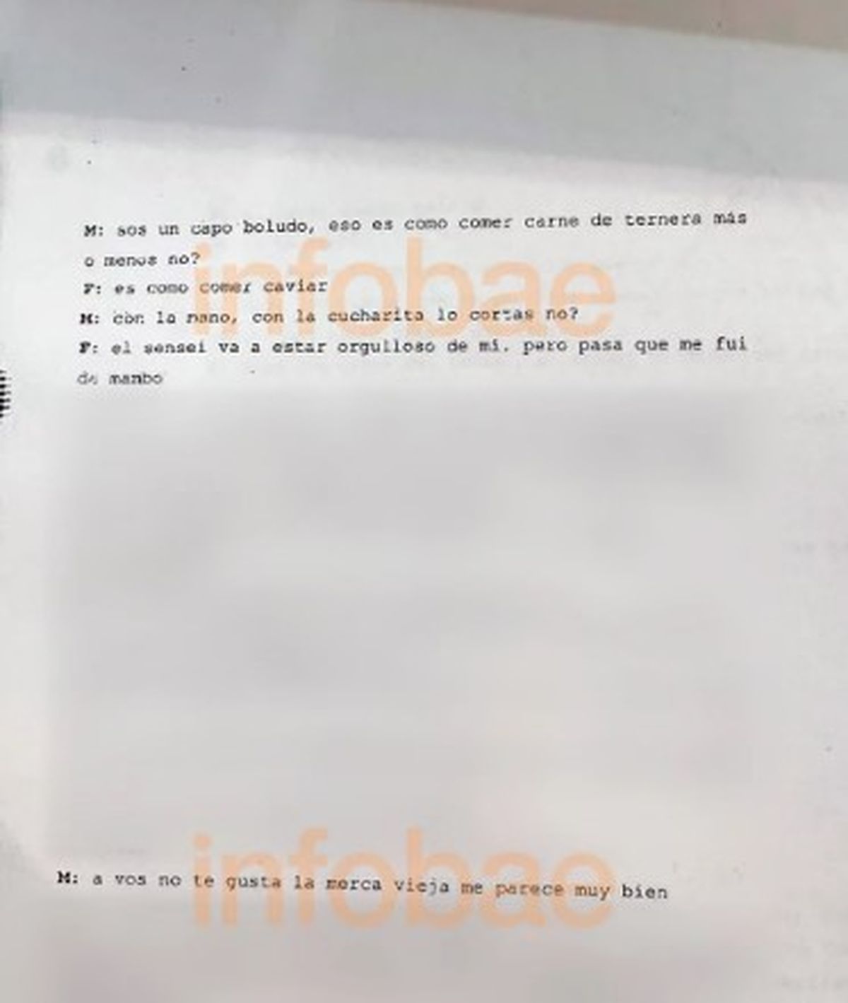 En otro de los diálogos, este con fecha del 7 de diciembre de 2022, Charpenet le cuenta a Angelotti que se metió en una aplicación donde conoció a un joven que, a juzgar por el diálogo, todavía no había terminado el colegio. “Esta semana es la fiesta de egresados”, dice y también presume de estar con un “chiquitín”. El líder de la banda le retruca, como si se tratara de un objeto.: “Un chiquitín que no prestás”.