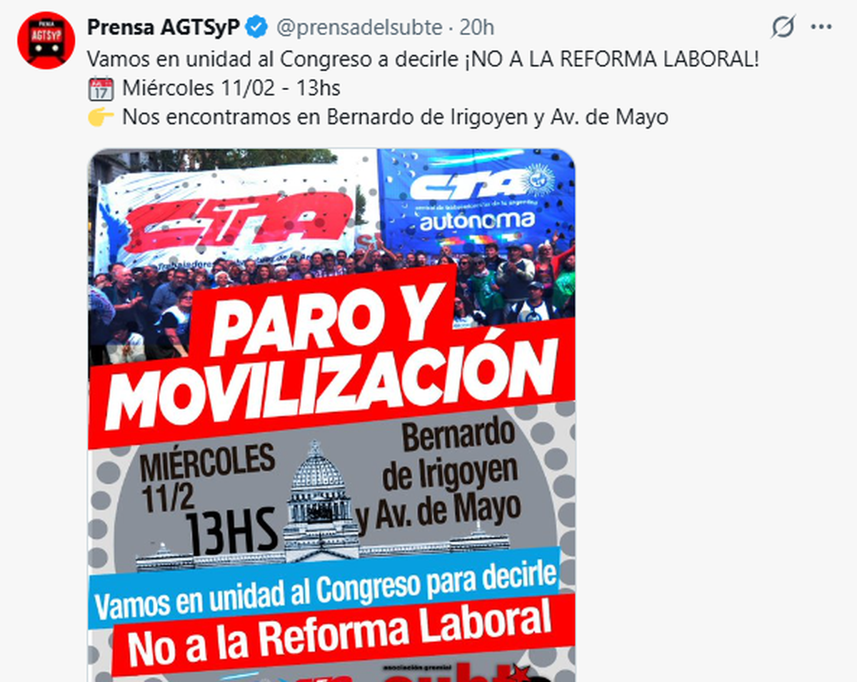 A pesar de que la CGT no convocó a un paro general, la Confederación Argentina de Trabajadores del Transporte (CATT) decidió hacer ceses de actividades parciales, que afectará a pilotos, aeronavegantes, personal aeronáutico de tierra, viales, marítimos, portuarios, fluviales y subterráneos.