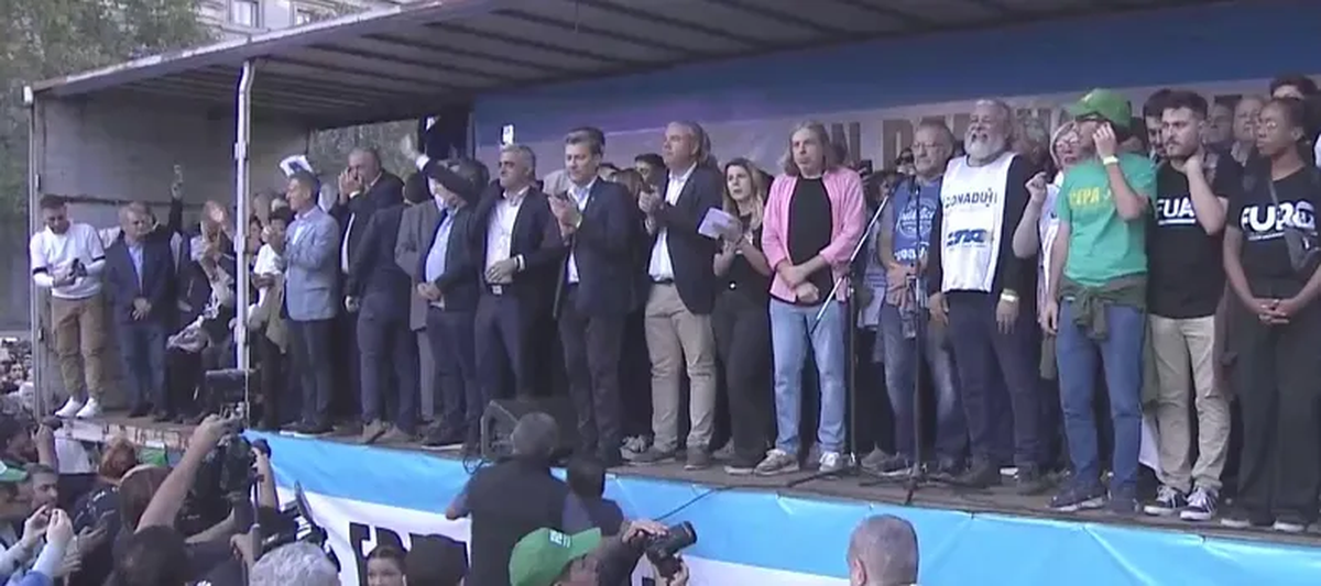A las 18:38 comenzó la lectura del documento del acto. Es el cierre de la movilización. Muy importante el texto del Frente Sindical de Universidades Nacionales, el CIN y la FUA: