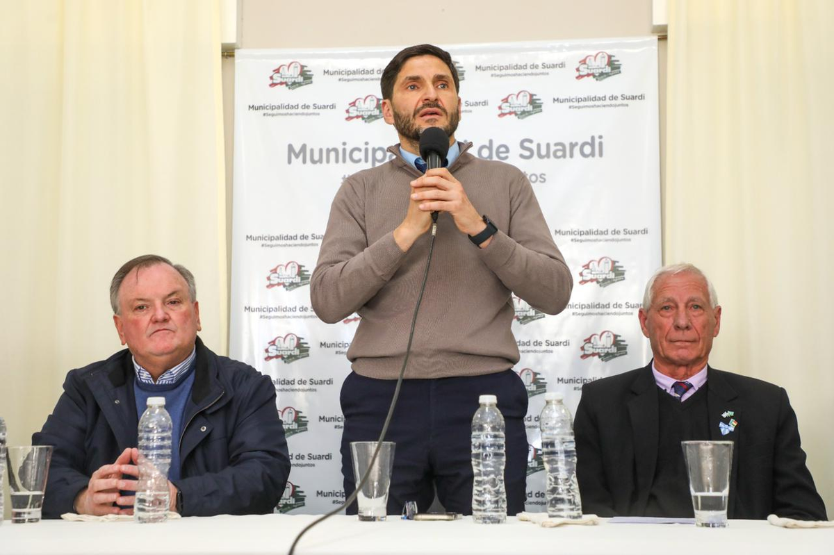 Posteriormente, Pullaro se trasladó a la ciudad de Suardi para signar un pacto con el intendente, Hugo Boscarol, mediante el cual la provincia destinará un aporte de $ 15.518.903,40 para la colocación de luminarias leds.
