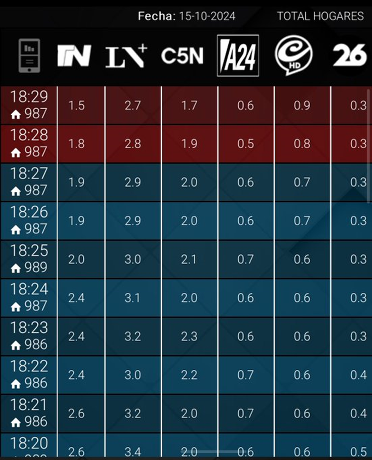 Finalmente, Canal 26 naufragaba en 0.1 y 0.2 puntos de rating con sus habituales síntesis internacionales.