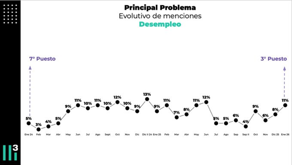 La analista sostiene que “la cuestión económica y el costo de vida concentran el núcleo de las preocupaciones. Economía en general, bajos salarios y desempleo encabezan el ranking, muy por encima de temas como inseguridad, corrupción o dirigencia política. La segunda etapa de la gestión encuentra a la ciudadanía menos movilizada por la confrontación política y más atravesada por la experiencia económica cotidiana”.