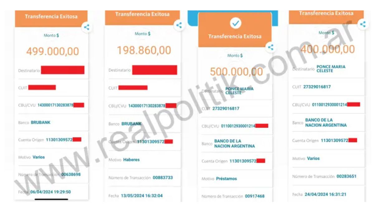 “De los 700 mil pesos que yo cobraba como asesora, ella me sacaba 500 y yo me quedaba con 200 ”, confirmó G, una de las víctimas de la extorsión. La denuncia se fundamentó con las capturas de pantallas de las numerosas transferencias que recibió Ponce de parte de su asesora, según informó el sitio RealPolitik.
