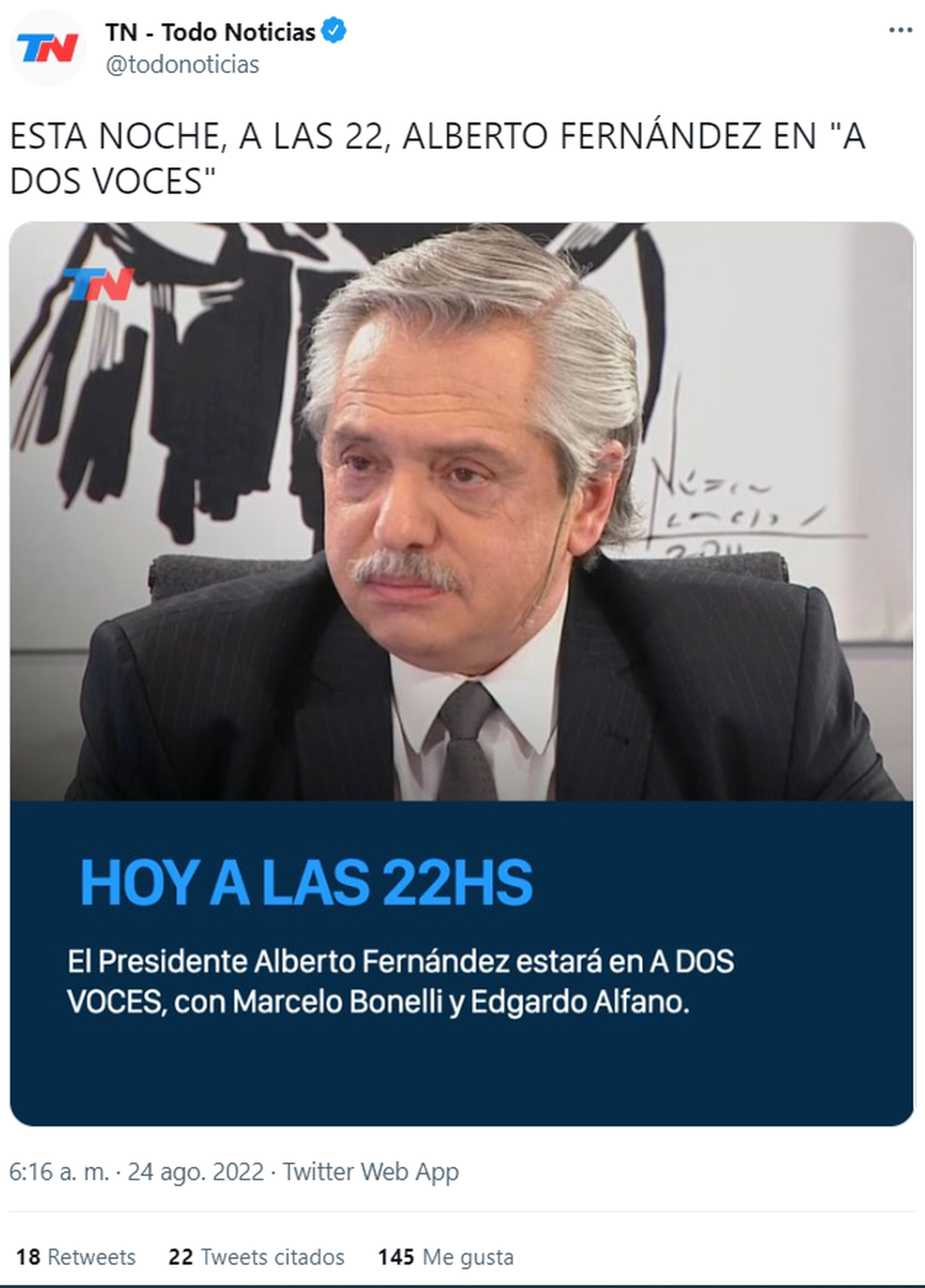 La dirigente peronista volvió a la carga contra el Grupo Clarín luego de que el presidente Alberto Fernández confirmara una entrevista para A dos voces, programa conducido por Marcelo Bonelli y Edgardo Alfano los miércoles a las 22 por TN, donde hablará sobre los cambios de Gabinete y el pedido de condena a CFK.