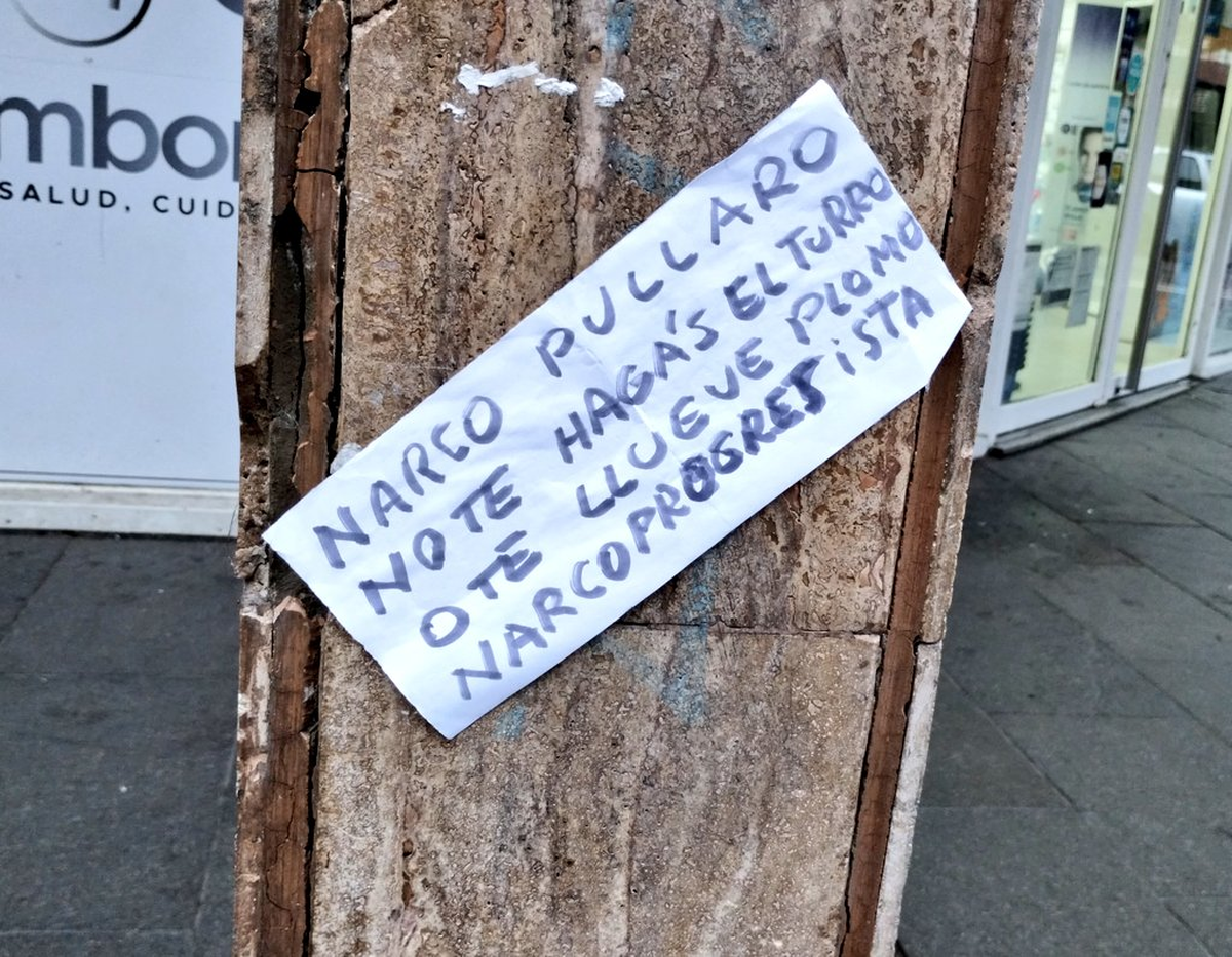 "Narco Pullaro no te hagas el turro o te llueve plomo narcoprogresista", decía uno de los textos.
