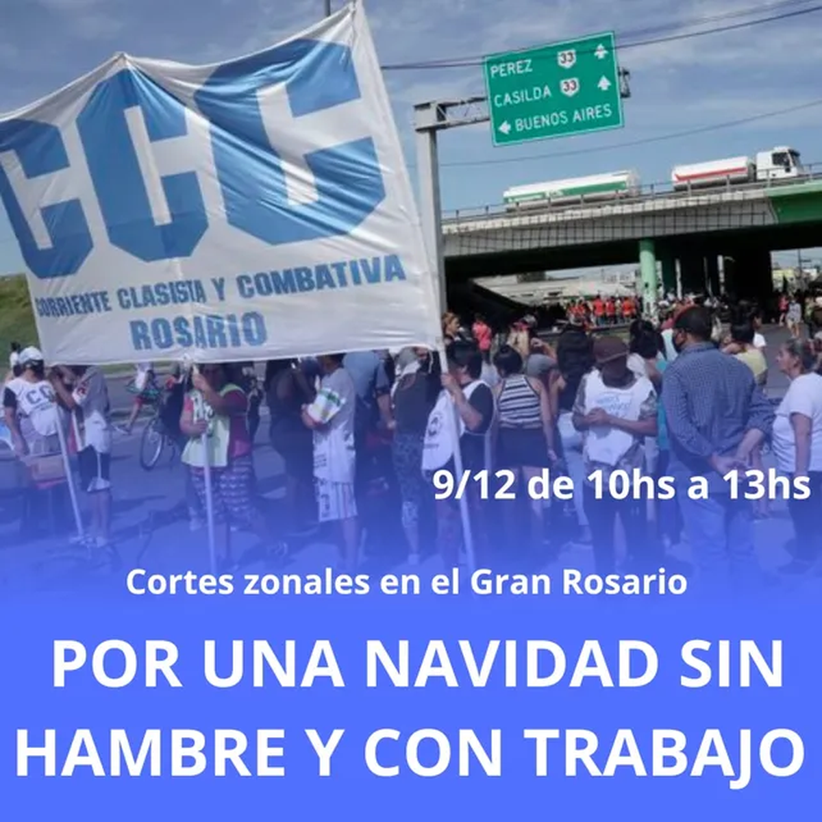 ROSARIO. Organizaciones sociales, con la Corriente Clasista y Combativa (CCC) como protagonista, realizarán este martes (09/12) una jornada nacional de protesta en diferentes puntos de la ciudad. La convocatoria se da bajo el lema: "Milei: Navidad con trabajo y sin hambre", presionando al Gobierno con una serie de reclamos urgentes.