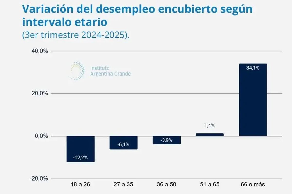 Según Instituto Argentina Grande (IAG), con microdatos del INDEC, determinó que en el tercer trimestre de 2025 la tasa de actividad de las personas mayores de 66 años creció 11% en términos interanual, que se define como una búsqueda de ingresos laborales de carácter 'supervivencial'.