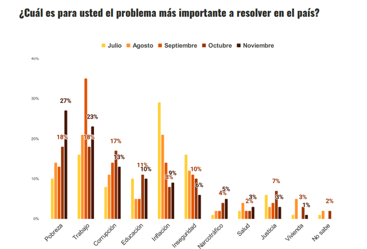 En línea con la respuesta sobre las oportunidades de empleo, la principal preocupación de los consultados es la Pobreza y el Trabajo.