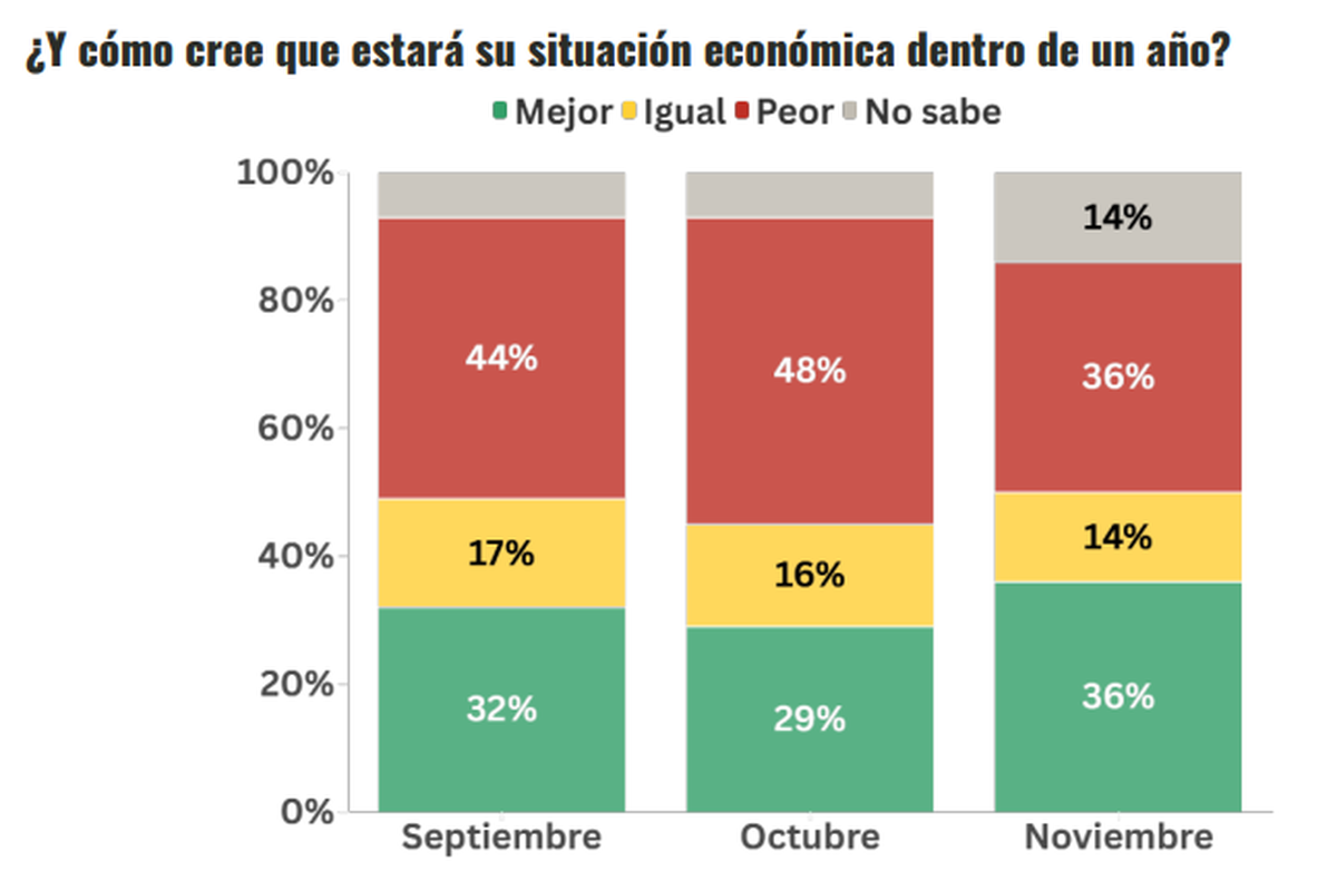 Tampoco hay mucho optimismo con 2026: El 50% cree que estará peor o igual.